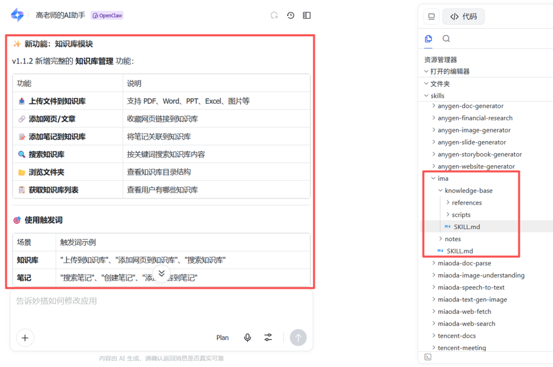 苏米注:OpenClaw 作为开源 AI 助理框架,其 Skill 生态的快速迭代值得关注。ima Skill 的加入,为知识库管理提供了新的交互方式,特别是与微信的深度整合,降低了使用门槛。