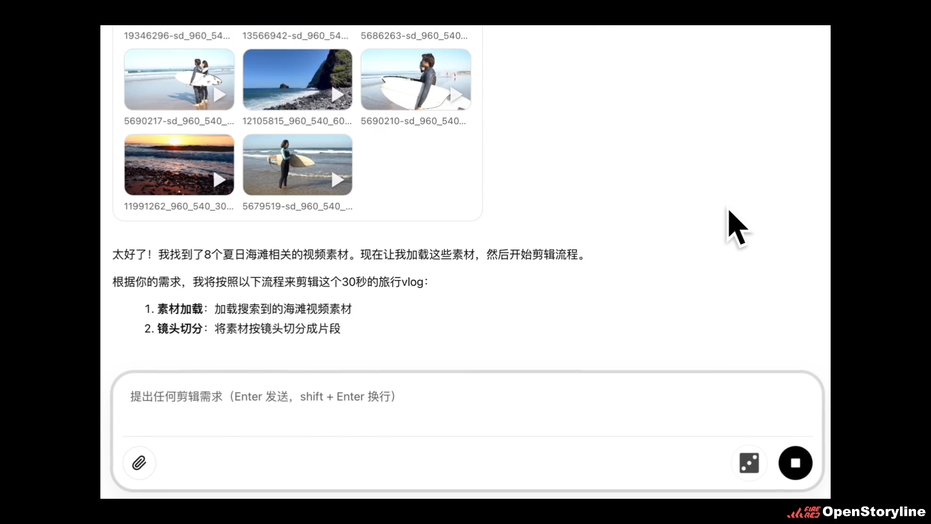 与传统的视频编辑工具不同,FireRed-OpenStoryline 不要求用户掌握时间轴操作、转场技巧或配乐知识。它通过大语言模型和多模态理解能力,将视频创作拆解为可自动化的流水线。