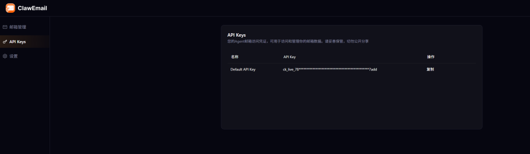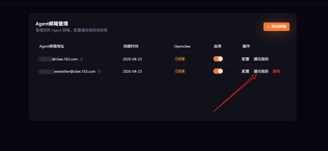 创建成功后会获得一个 xxx.bot1@claw.163.com 的子邮箱。