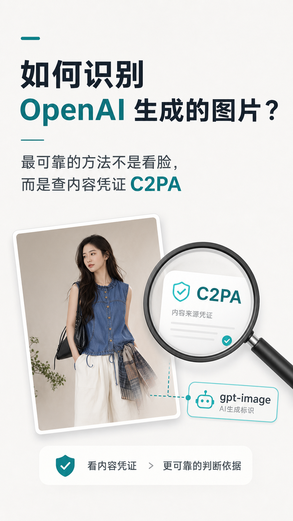 随着 OpenAI GPT-image-2 等模型生图质量越来越高,肉眼已经越来越难区分 AI 生成图片和真实图片。真正有效的识别方法,是检查图片是否包含 C2PA 凭证。