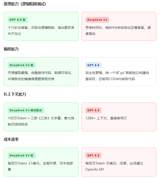 | 场景 | GPT-5.5 | DeepSeek V4 |