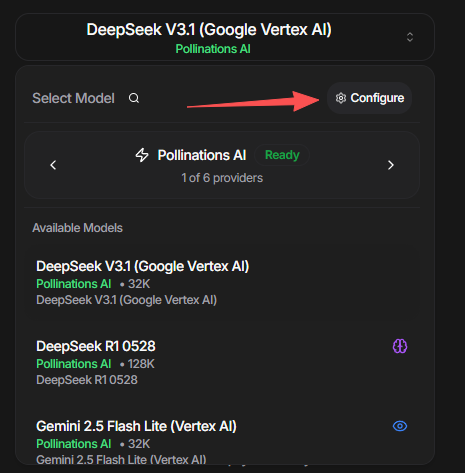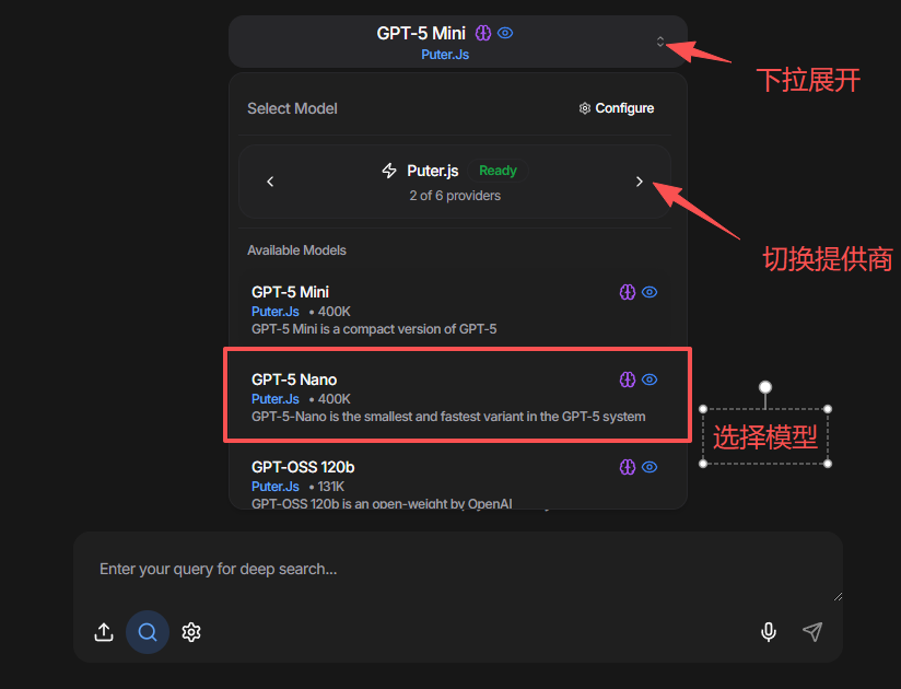 进入网站后,首先你可以点击页面顶部的图标,在下拉菜单中选择你希望使用的AI模型。