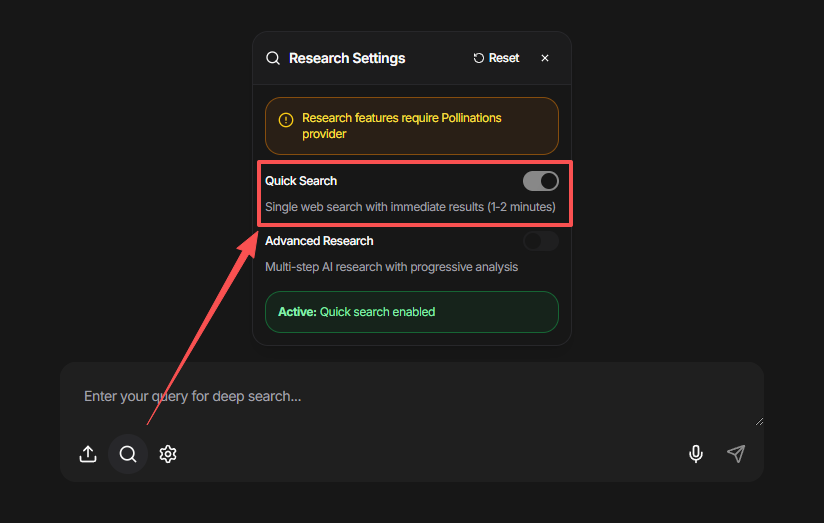 根据不同的模型提供商,某些模型还支持搜索功能。