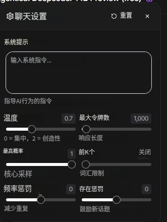 点击页面右上角的齿轮图标,可以进入设置页面。在这里,你可以调整模型选择、API密钥等基本设置。