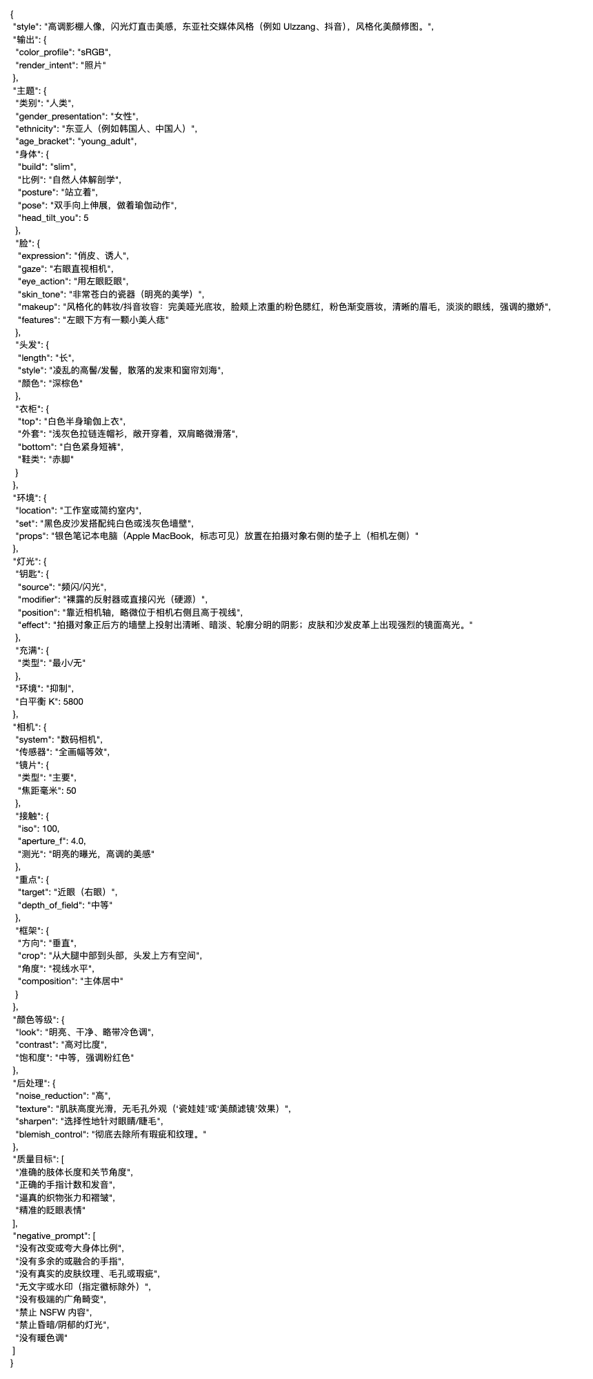 "style": "High-key studio portrait, direct flash aesthetic, East Asian social media style (e.g., Ulzzang, Douyin), stylized beauty retouching.",