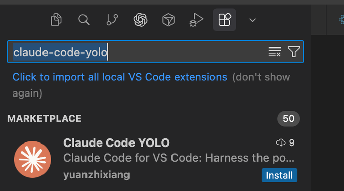 在 VS Code 里搜 “Claude Code YOLO” 就能安装
