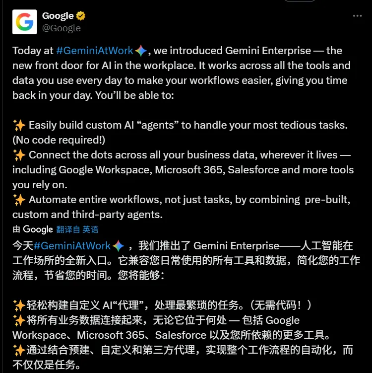 Gemini Enterprise 的核心能力之一,就是把这些系统全打通。