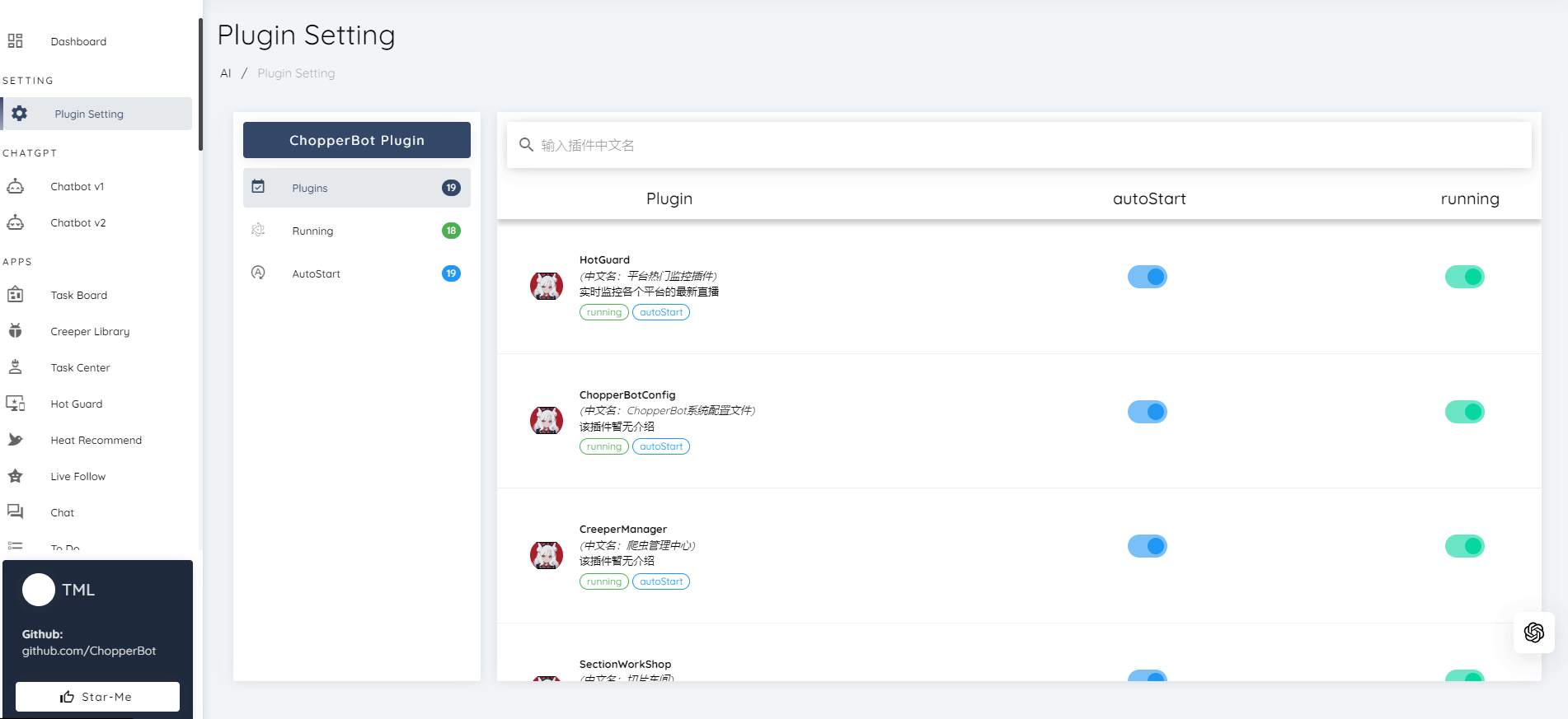 ChopperBot 不是“命令行级”的开源项目,而是一个带完整后台界面的系统。