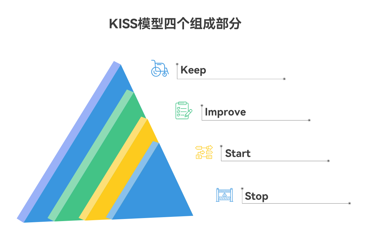 我给AI设定的角色是“KISS复盘顾问”,它会严格按照 Keep → Improve → Start → Stop 的流程,引导我逐步思考,每一步都只聚焦一个问题。