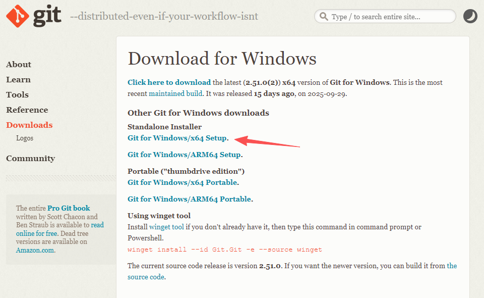 所以直接打开Git官网:https://git-scm.com,点击下载: