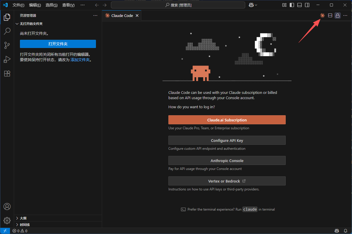安装后,重新启动 VS Code,点右上角这个Claude Code的图标就可以正常使用了