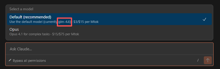 这里已经可以看到我们配置的glm-4.6模型已经选择成功了