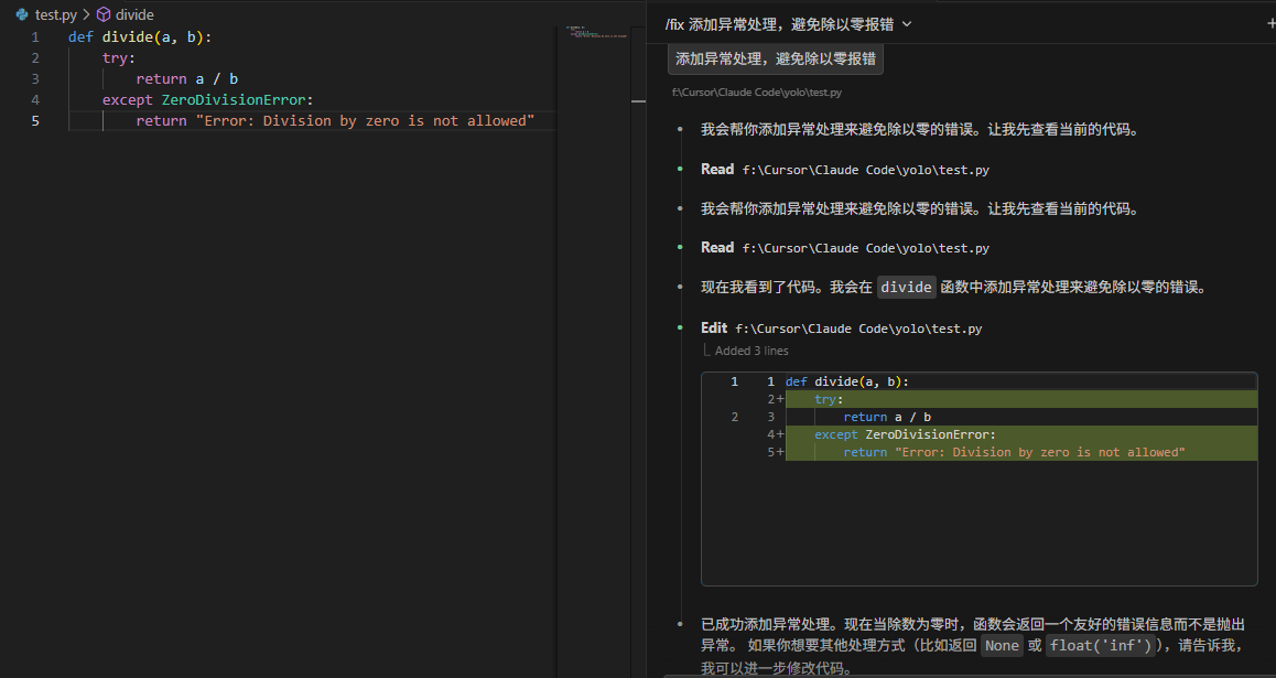 插件自动执行(无需弹窗确认),几秒后生成修复代码: