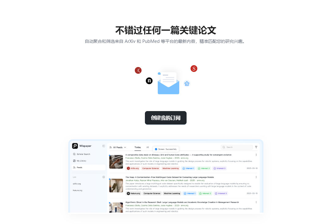 对于做综述或跟踪技术前沿的人来说,这种自动化订阅的体验非常贴心。