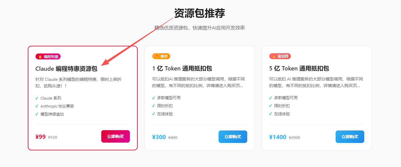 而且我还看到有Claude 编程特惠资源包,如果之后用完了,可以试试