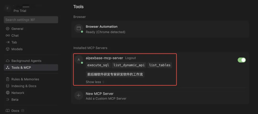 AipexBase 从底层就为 AI 应用设计,原生支持 MCP 协议与 AI Coding 模式。