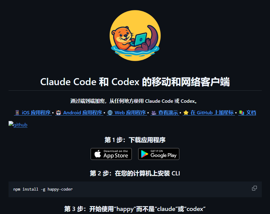 但是!最近看到一个叫 Happy 的开源项目后,瞬间觉得Pro 和 Max也没有那么香了,Happy让你的Claude Code(或Codex)变成一位“远程AI编程助手”,你可以从任何设备——无论是手机、平板还是网页——随时接入家中正在运行的AI环境。对于像我这样需要灵活工作、经常切换设备的独立开发者来说,这个项目的出现无疑是一个巨大提升。