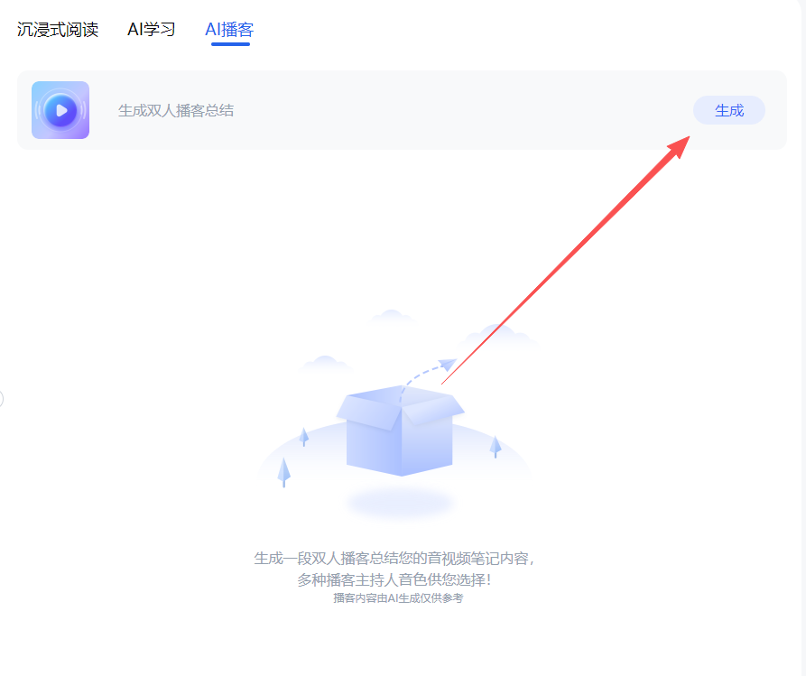 最后试了一下播客生成的功能,我直接上传了一个播客解析出来,然后再用在线播客生成的功能试了试
