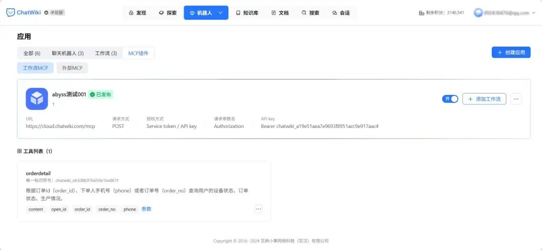 | 工作流编排 | 对话工作流、插件工作流;支持基础节点、双向 MCP、Agent 模式 | 自定义公众号自动化流程,如:用户提问 → 知识库检索 → AI 生成回复 → 标签打标 |
