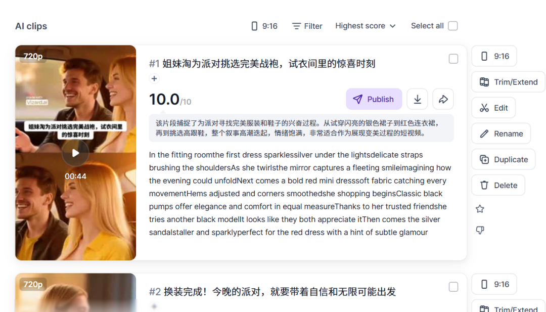- 自动亮点:一次运行生成9条候选短视频(30–60秒),其中6条可直接使用,3条需微调字幕或片头节奏。