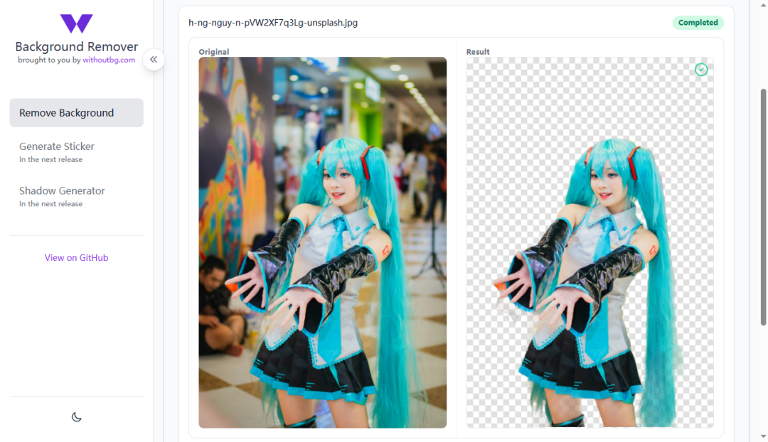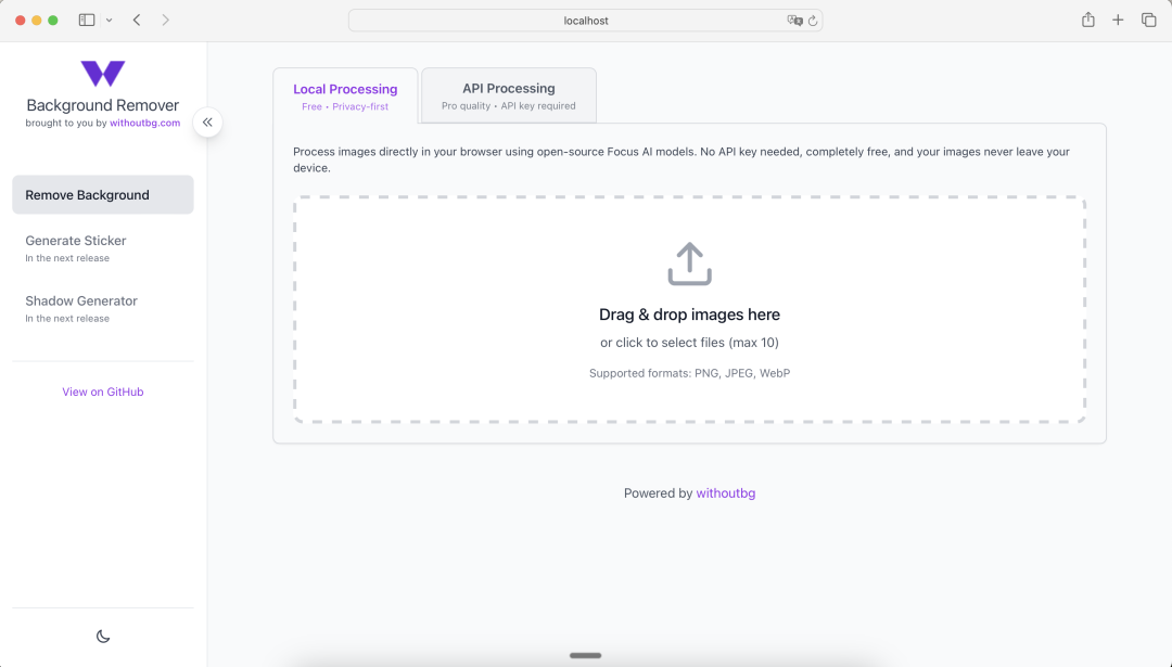 与其他在线抠图网站相比,withoutBG提供了本地部署的选项,这意味着你可以完全掌控数据隐私,同时避免在线服务的速率限制。
