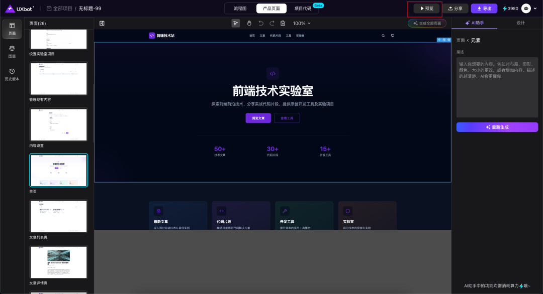直到我接触到UXbot这款AI原型设计工具,才意识到这些问题有了系统解决方案。
