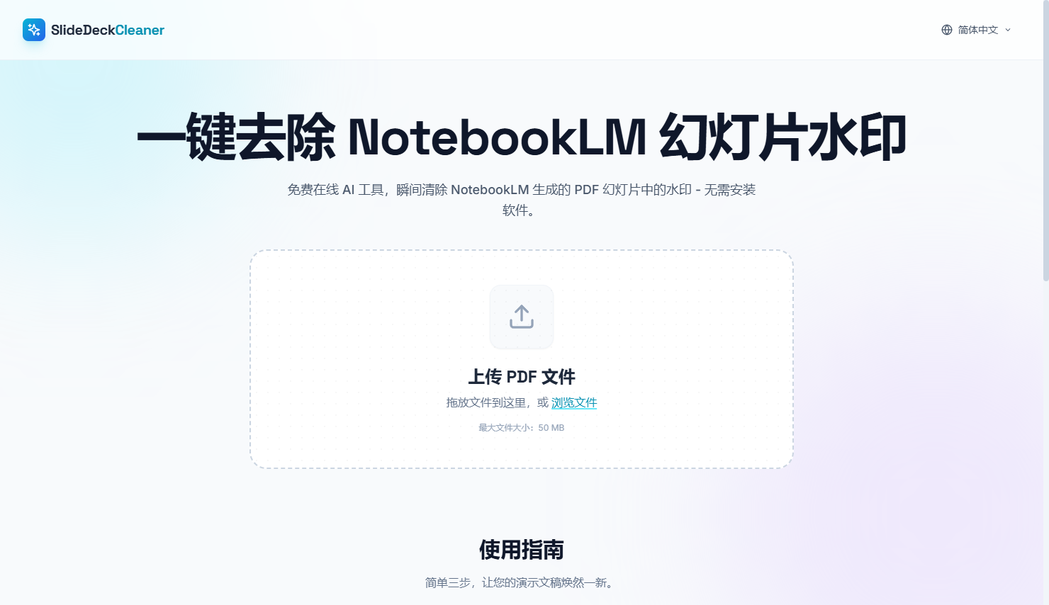 一键去除水印的在线工具,操作简单,上传NotebookLM 导出的PDF 就马上会处理。