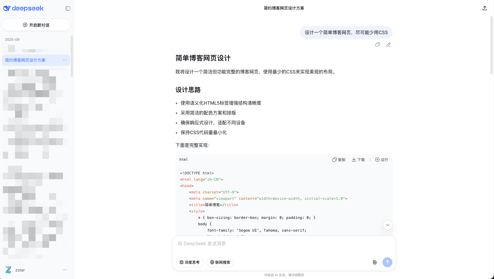 复现特点:DeepSeek首页和对话页的布局相对规整,以卡片式设计为主。通过截图上传后,AI能准确识别布局结构,生成的仿制版本在视觉层面达到90%以上的还原度。