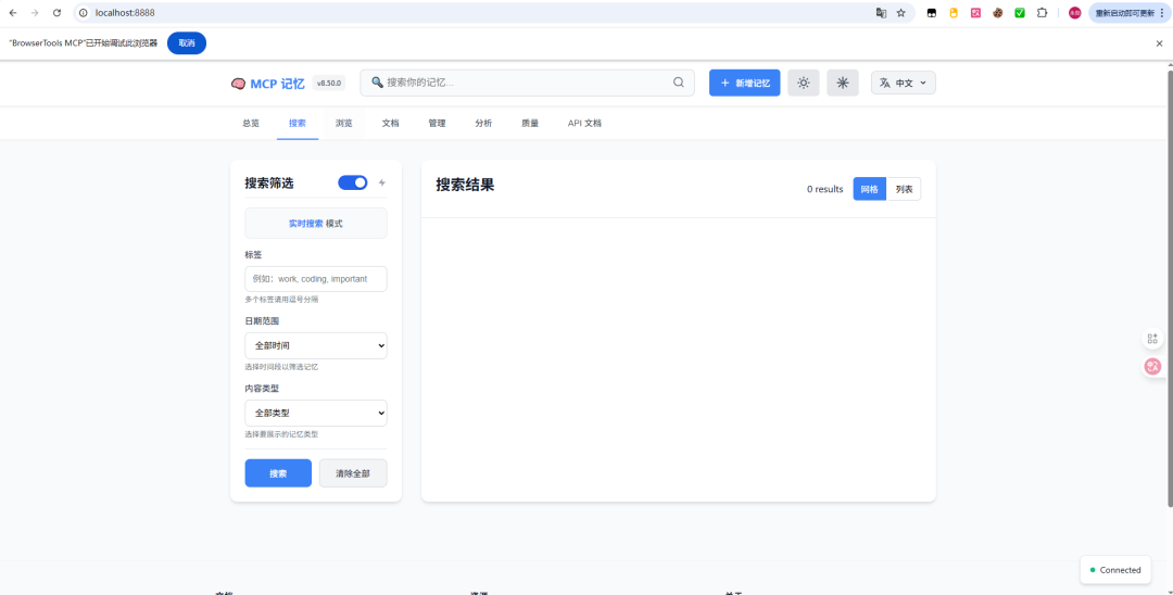 - 工具列表:确认40+个工具可用(store_memory、retrieve_memory、search_by_tag等)