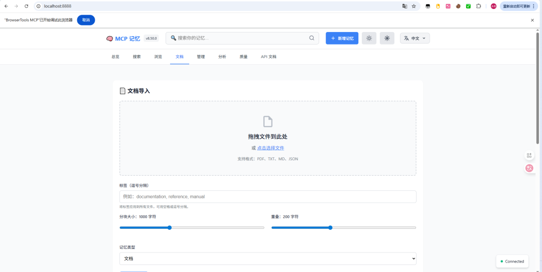 curl http://127.0.0.1:8888/api/health - MCP初始化:验证协议连接