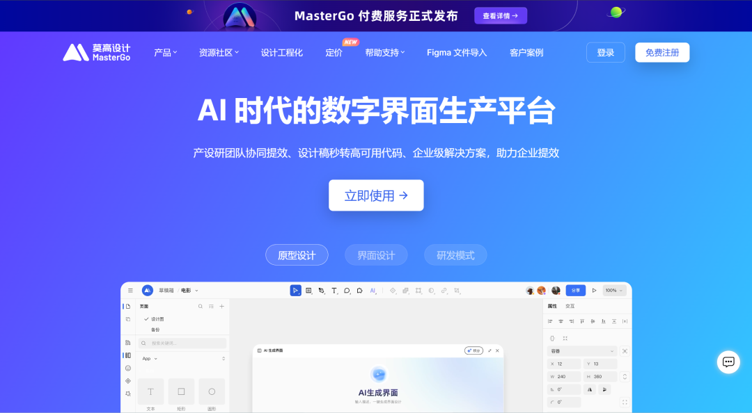 产品简介:企业级AI设计工具,2024年6月在新加坡全球发布。针对UI/UX设计师和产品研发团队打造,定位为全球领先的AI驱动协同设计平台。