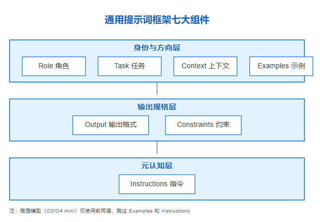 我把提示词拆成七个组件,并分为三层: