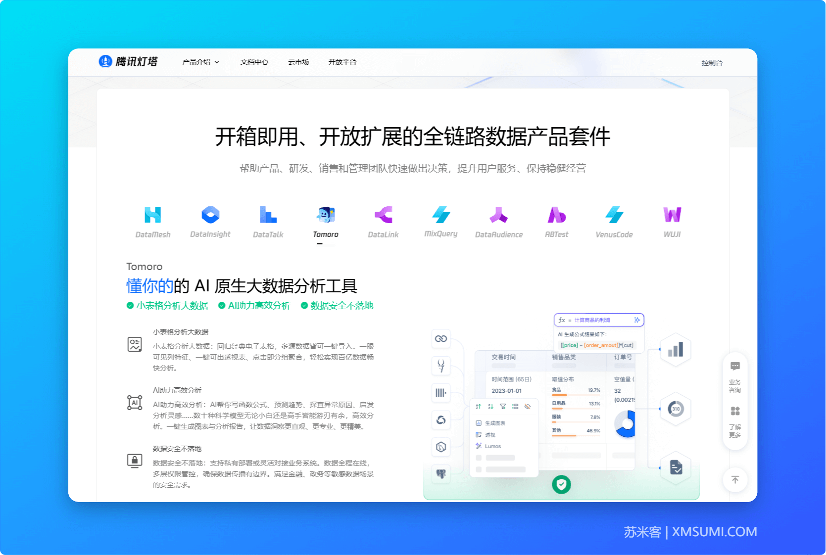 简介:腾讯灯塔推出的AI原生大数据分析工具,通过电子表格交互界面降低技术门槛。