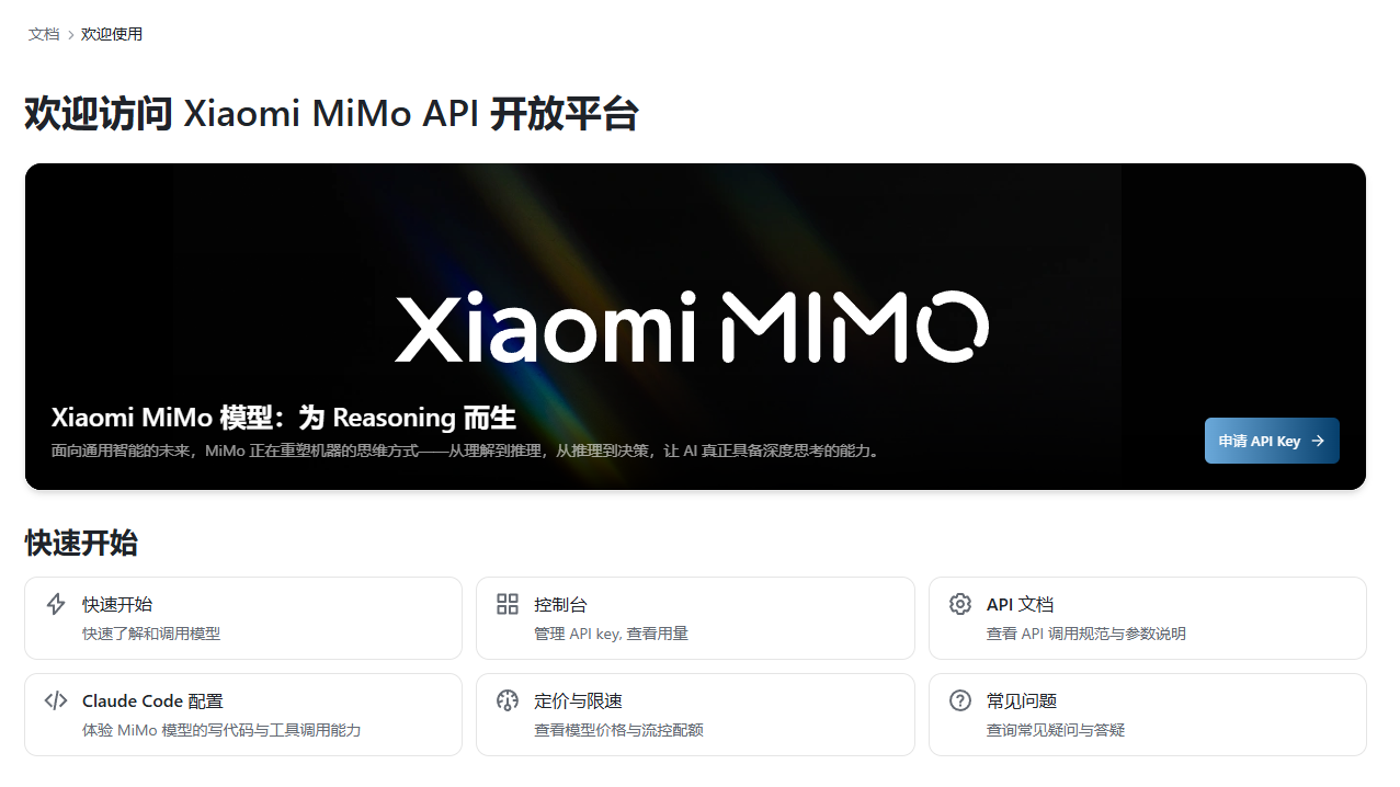 登录/注册(有小米账号直接可登录使用)密钥获取获取免费 API Key。