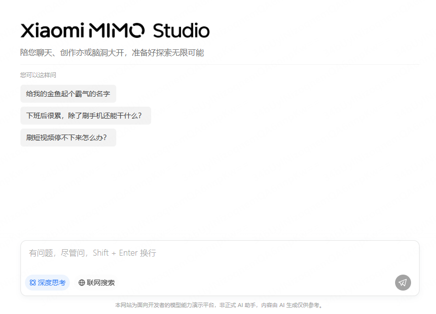 Studio地址:https://aistudio.xiaomimimo.com/