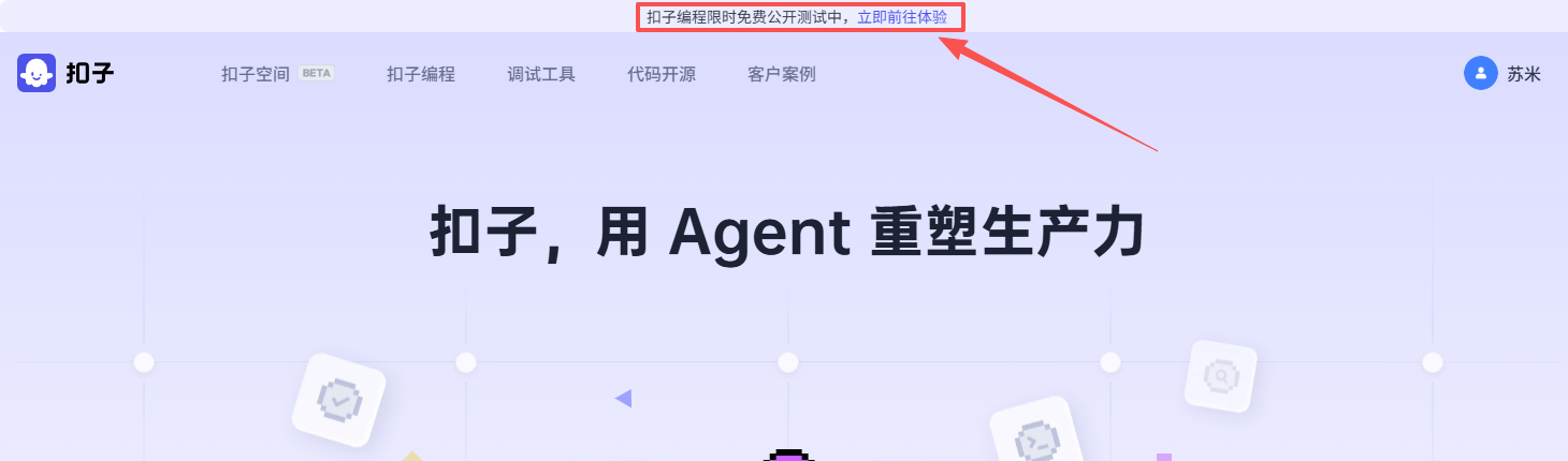进入主页后能看到提示:扣子开发平台全面升级为扣子编程。