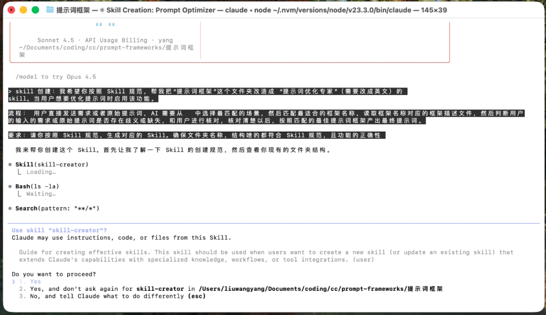 - 向Skill说明你需要优化提示词(可以只说需求,也可以提供原始提示词)