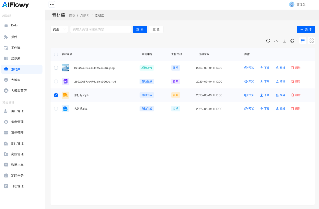 近几个月测试了一款开源项目 AIFlowy,它并不试图成为“全能工具箱”,而是把企业级底座能力做扎实,在 Bot、RAG、工作流、权限、日志、素材管理等关键模块上提供相对完整的一体化实现,对比常见的 Dify、Coze 这类平台,AIFlowy的差异点更偏向“国产化落地”和“私有化易用”。