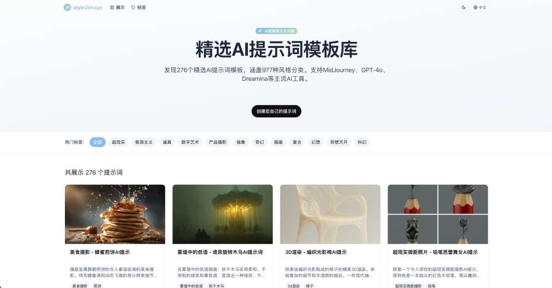 简介:一个提示词模板库和风格分类系统,提供结构化的提示词创建方案。