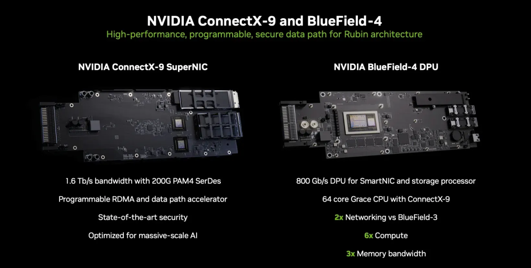 - BlueField-4 DPU:专责安全、存储与基础设施卸载