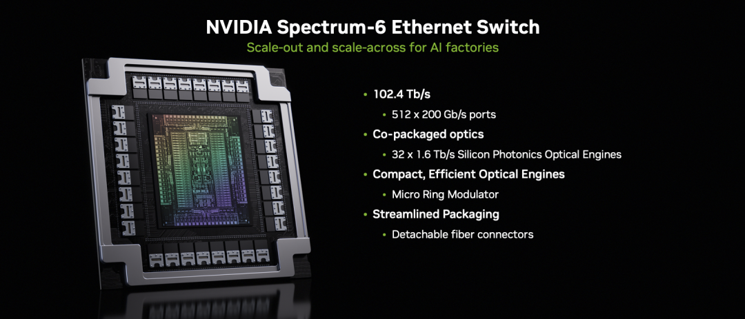 - 采用 共封装光学(Co-packaged Optics) 技术: