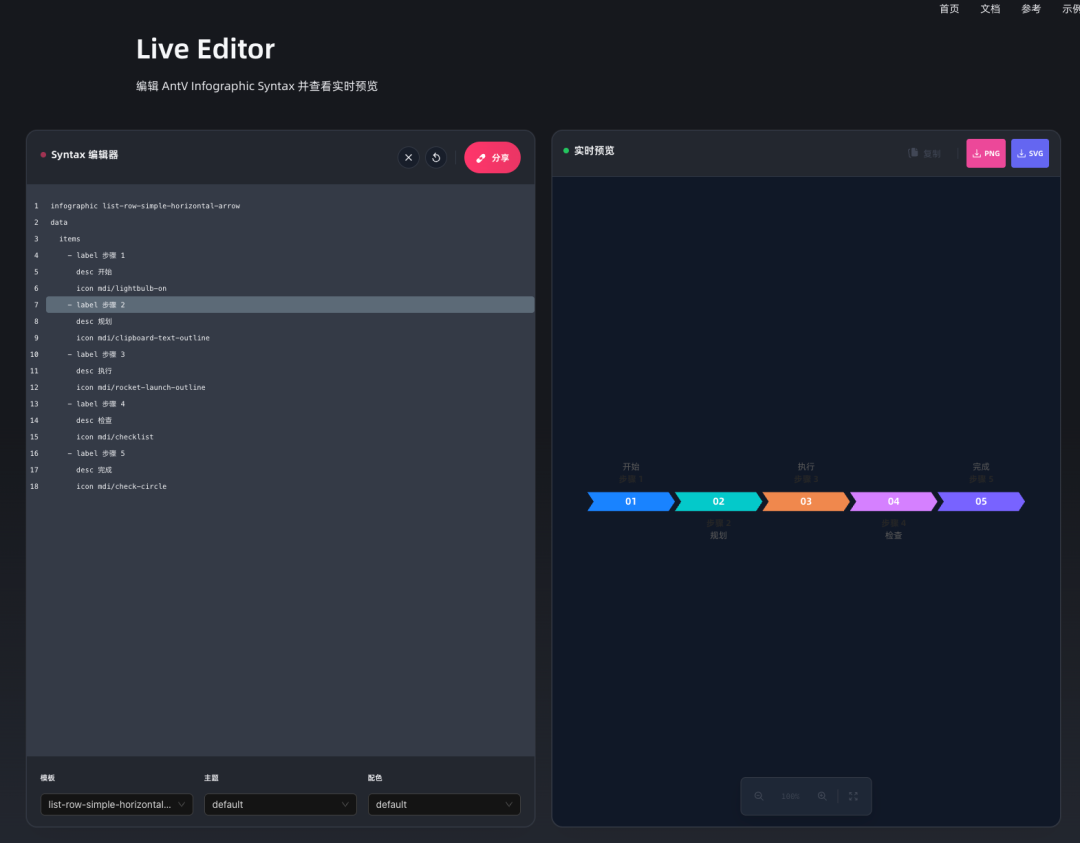 - 语法生成器:将自然语言描述转为 Infographic 语法