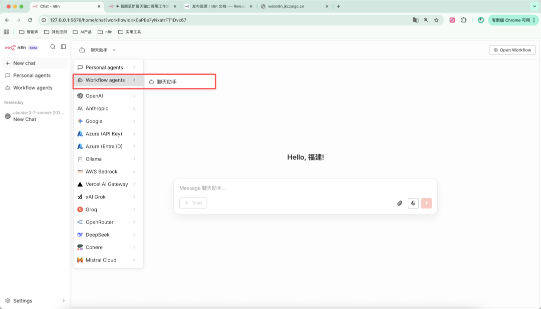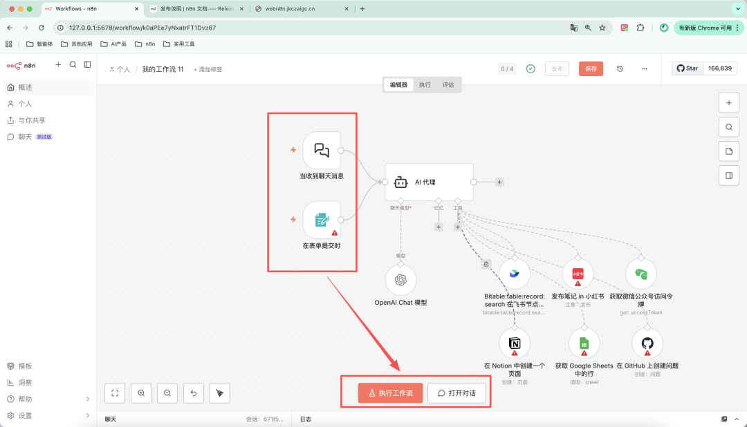 顺着这个入口往下试,我的直观感受是:n8n 正在从“工作流驱动”往“对话驱动 + Agent + 工作流”的组合方式移动。
