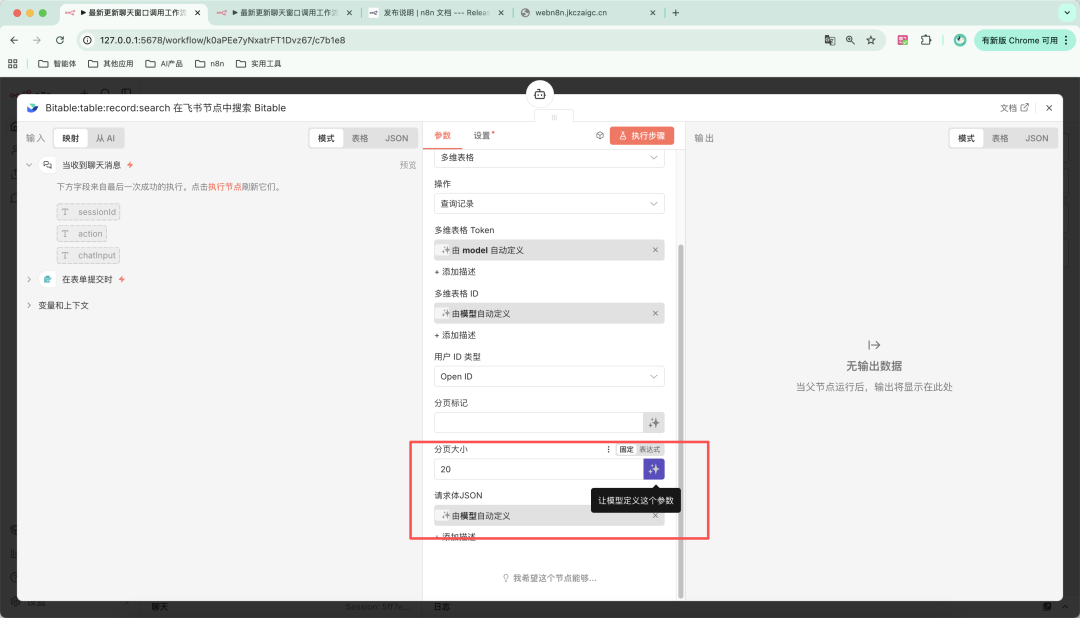社区节点(如飞书、小红书、微信公众号等)可以作为“工具”直接接到 Agent 上,模型可以尝试自己编写调用参数。