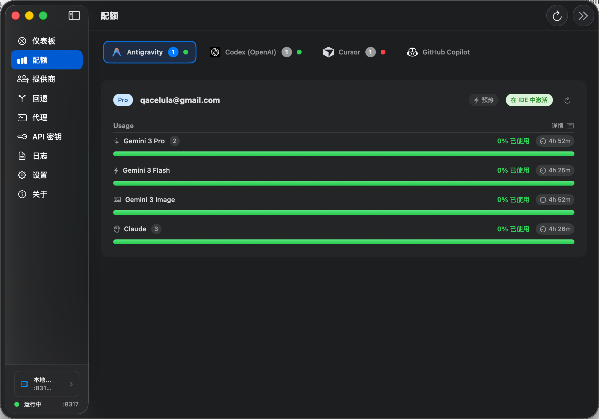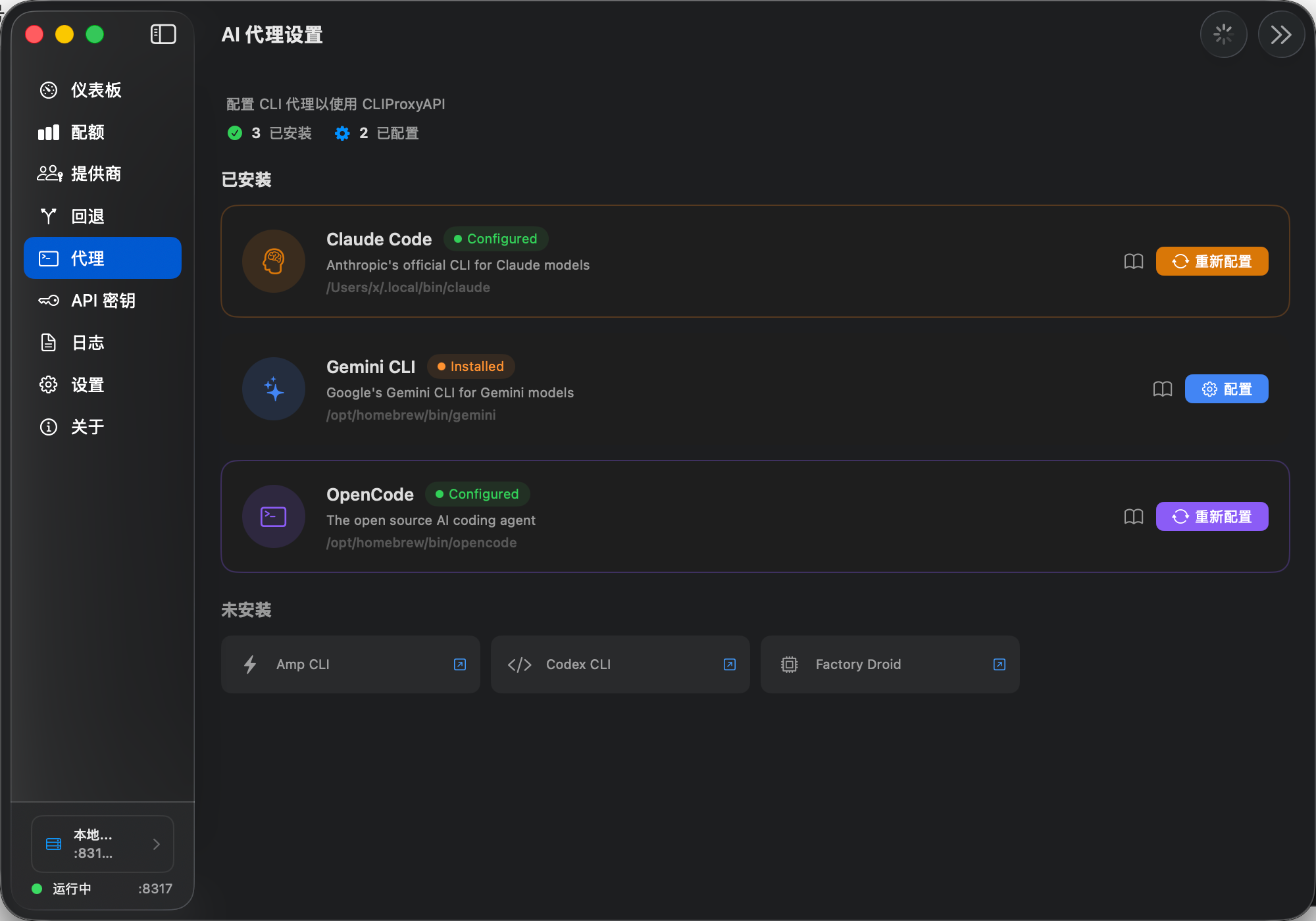 - 在本地运行一个代理服务器(CLI Proxy API)