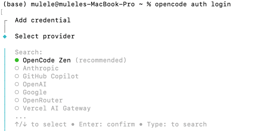 opencode auth login