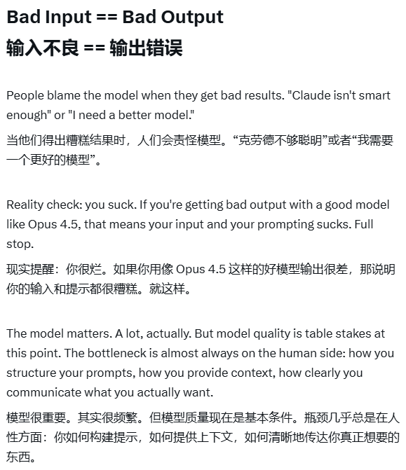 如果你持续得到糟糕的输出,问题不在Claude,而在于: