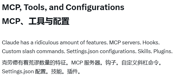 - MCP (Model Context Protocol):连接Slack、GitHub、数据库。如果发现自己频繁复制信息到Claude,可能有对应MCP能自动完成