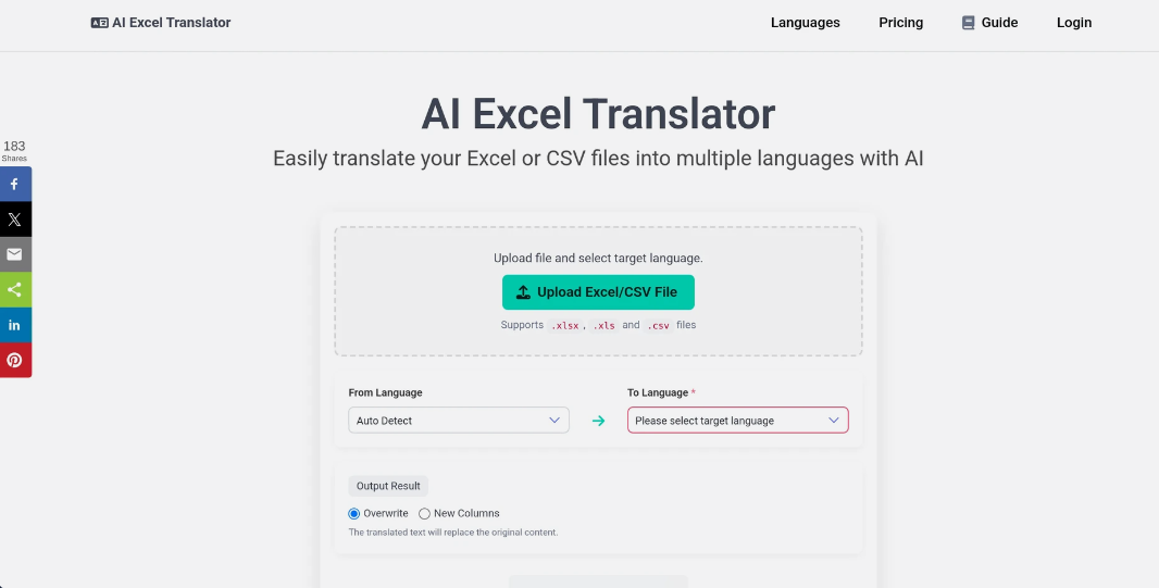 - 易于上传:只需上传您的文件(支持 .xlsx、.xls 和 .csv)。