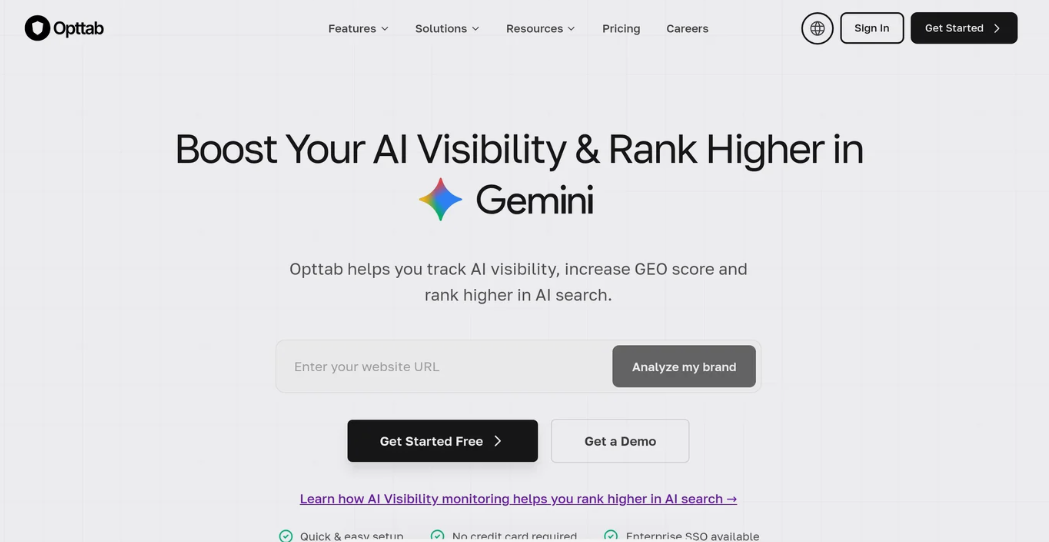 Opttab 是一款帮助用户追踪 AI 搜索可见性,提高 GEO 分数,并在 AI 搜索中获得更高排名的工具。 它可以帮助内容创作者、企业和营销人员优化其数字资产,从而在 AI 驱动的搜索结果中脱颖而出。 通过 Opttab,您可以全面掌控品牌在 AI 搜索中的表现。